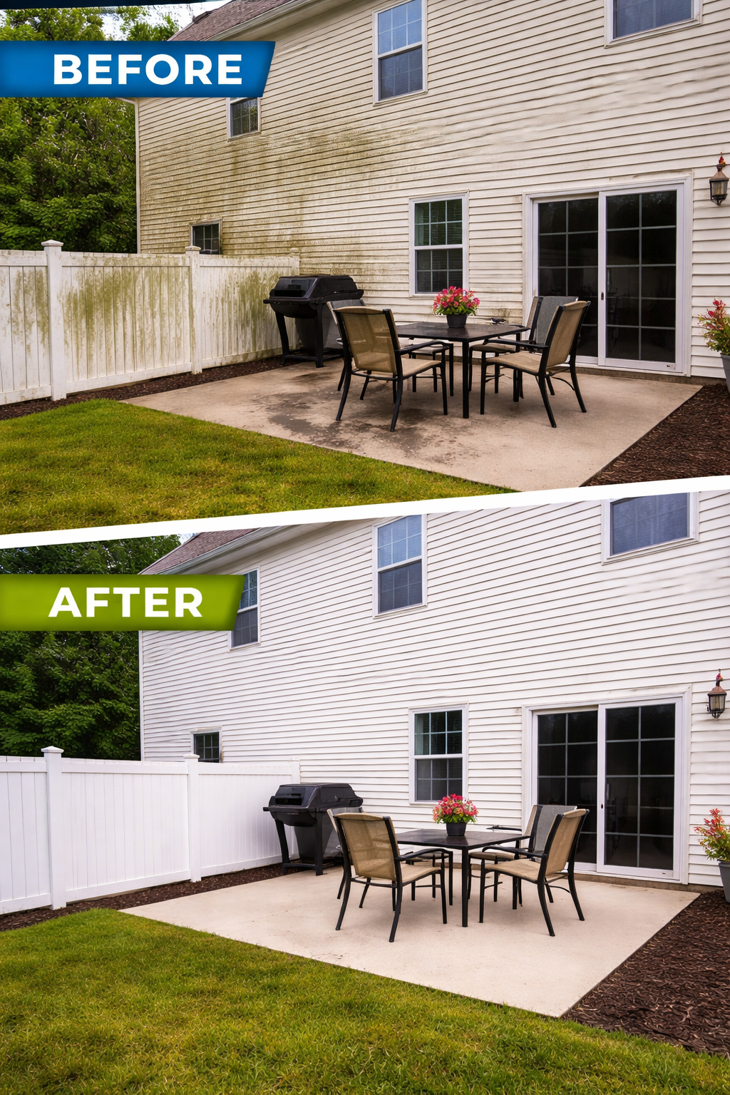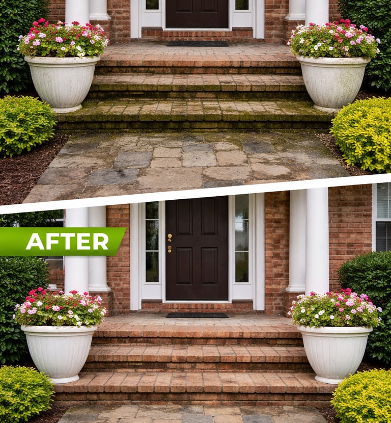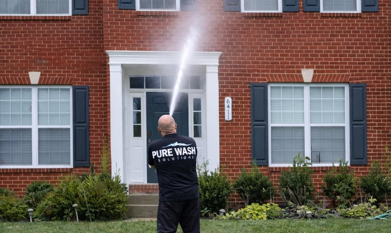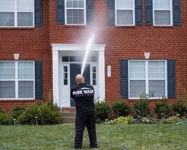 Pressure washing homes, windows, and driveways with care.